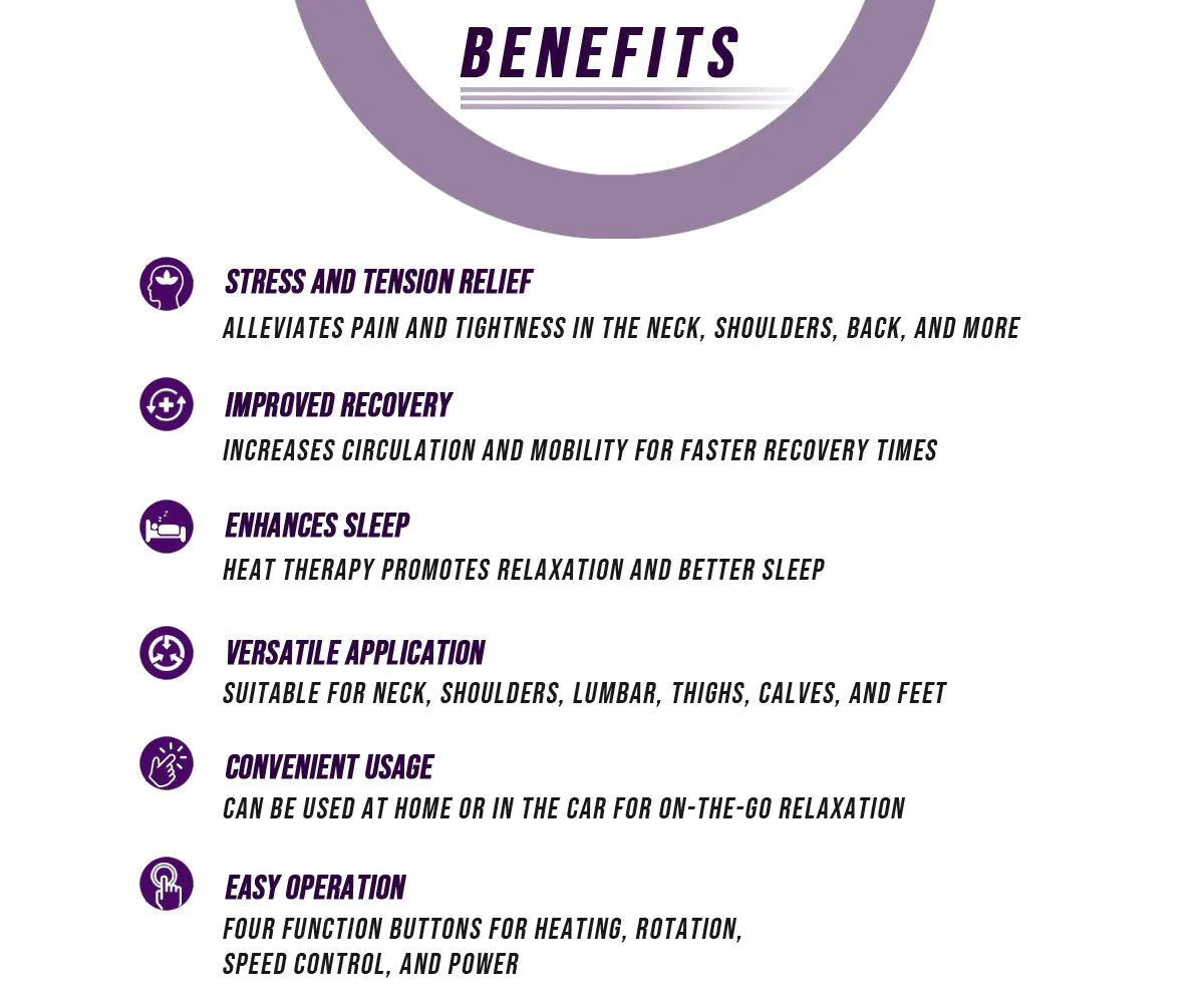 Not only does it help to relieve stress and tension, but it also aids in improving recovery times. Using bi-directional movement that mimics the feeling of a personal massage, this massager helps increase circulation for improved mobility. The heat therapy feature also helps to promote better sleep.